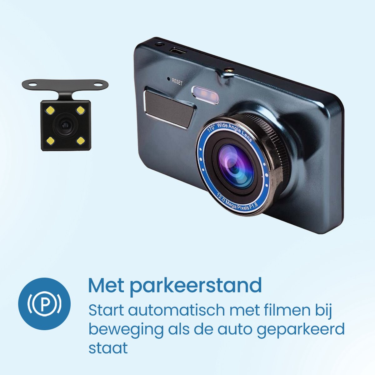 auto geparkeerd staat. De dashcam blijft actief en registreert bewegingen automatisch.