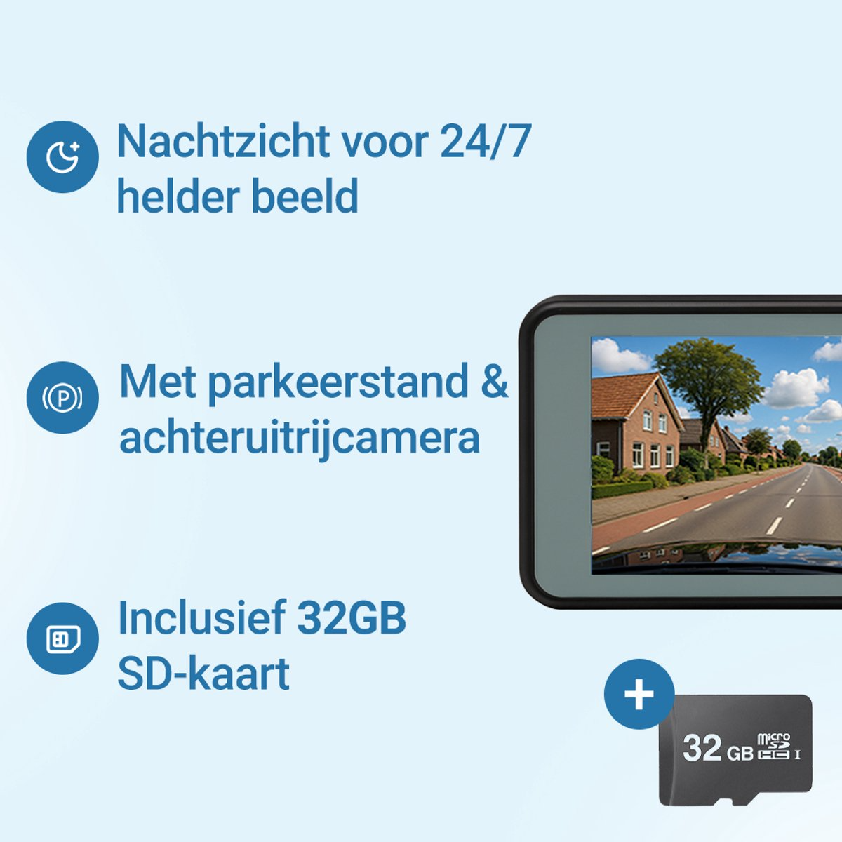 De ingebouwde nachtzichtfunctie en parkeermodus bieden extra bescherming wanneer je