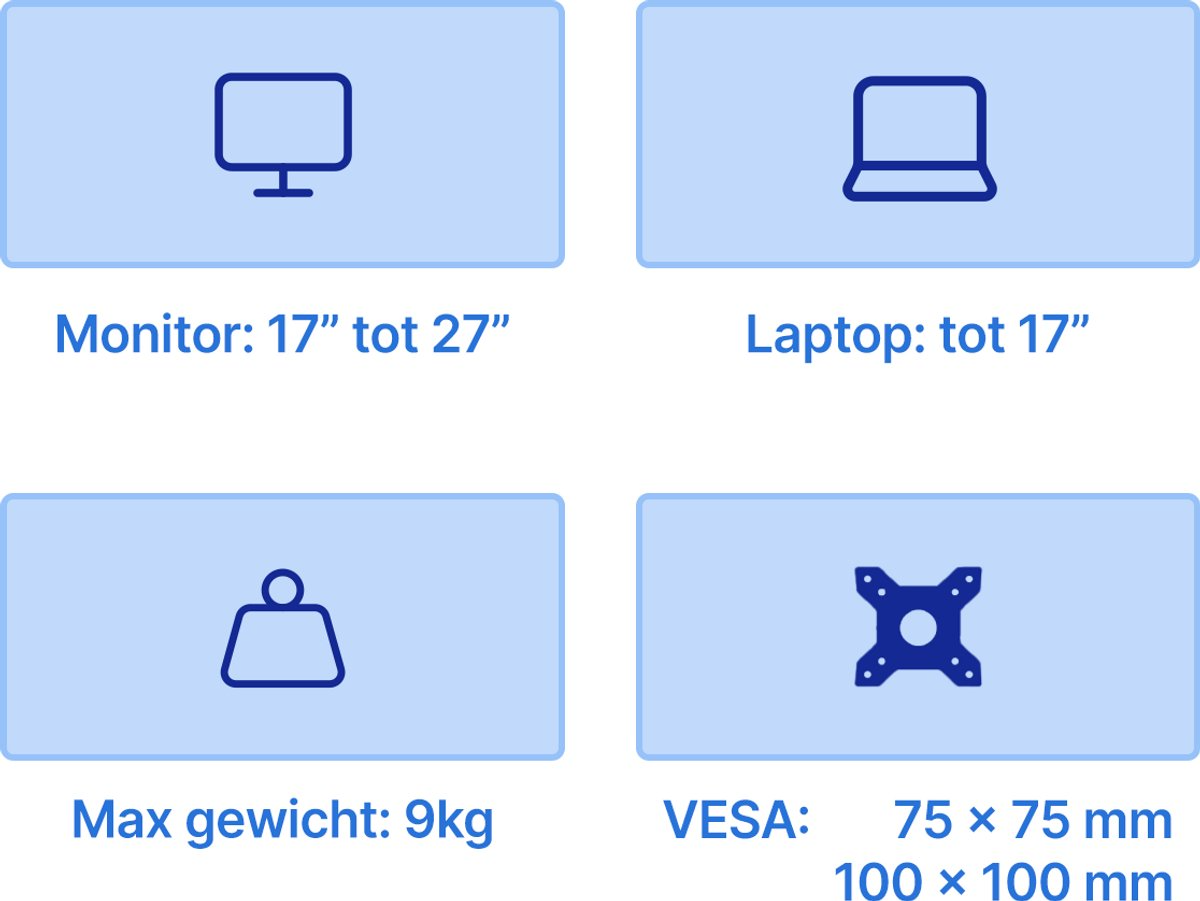 De stevige monitor arm is geschikt voor één monitor en een laptop en biedt voldoende