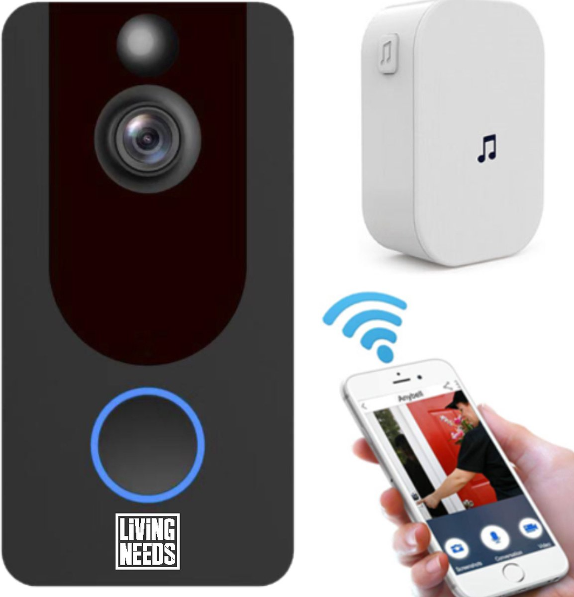 Living Needs – Draadloze Deurbel – HD Video Deurbel met Camera – 1080P HD